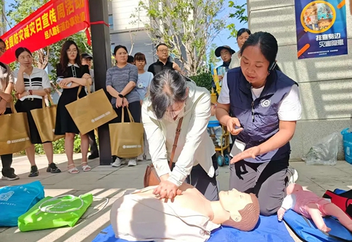 在互動體驗環節,工作人員展示結繩演練并指導實操,保障群眾掌握基本結繩逃生技能?,F場還設置了仿真人體模型,醫護人員指導群眾進行心肺復蘇操作練習,同時為群眾演示海姆立克急救法操作流程。